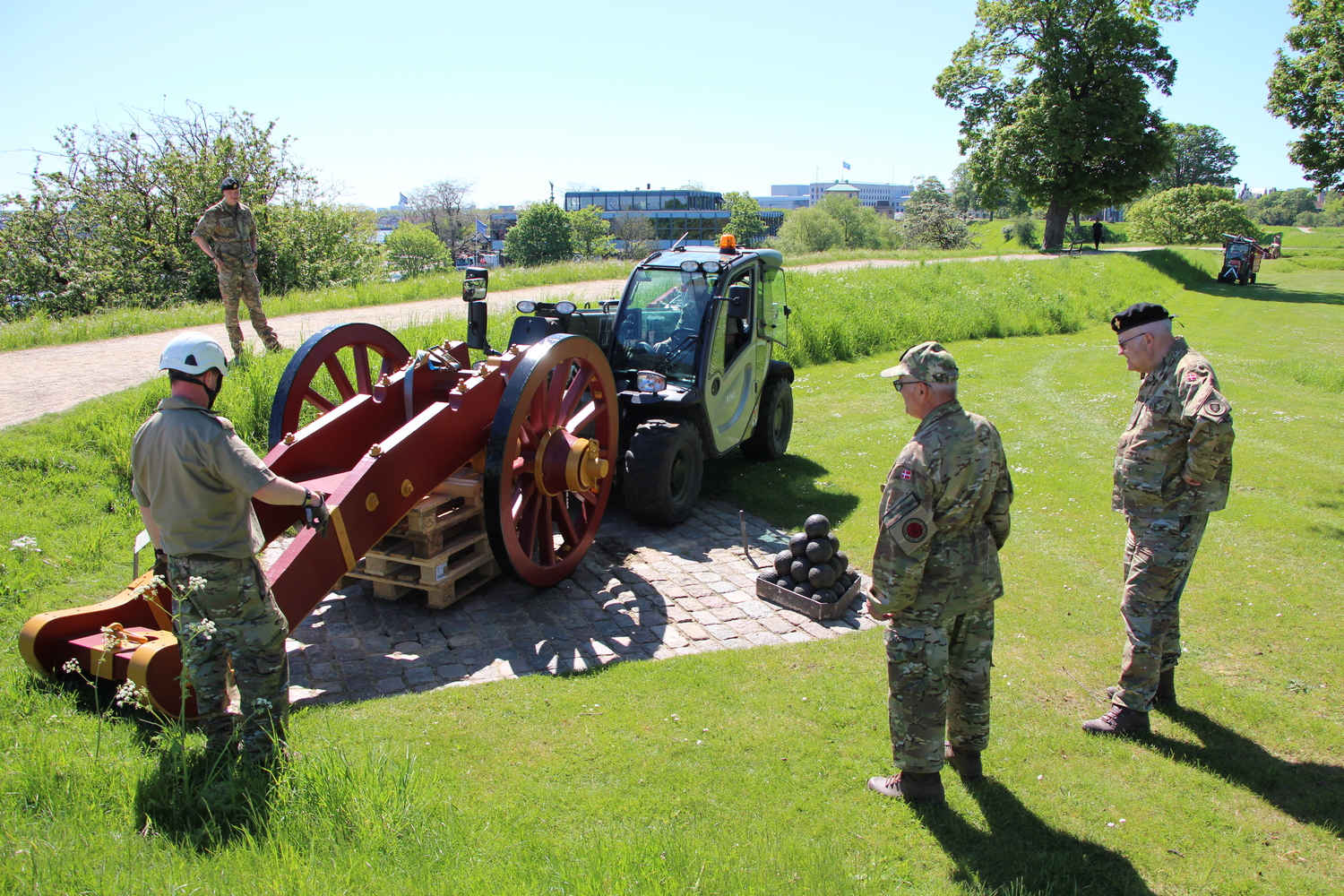 De restaurerede lavetter til de tre kanoner på Prinsessens Bastion blev den 14. maj 2024 genforenet med kanonerne.